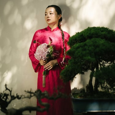 “Tôi chọn áo dài Gấm Hồ Điệp cho một bộ ảnh cá nhân. Ấn tượng đầu tiên là form áo được cắt rất chuẩn, cổ tay và cổ áo mềm mại mà không gò bó.