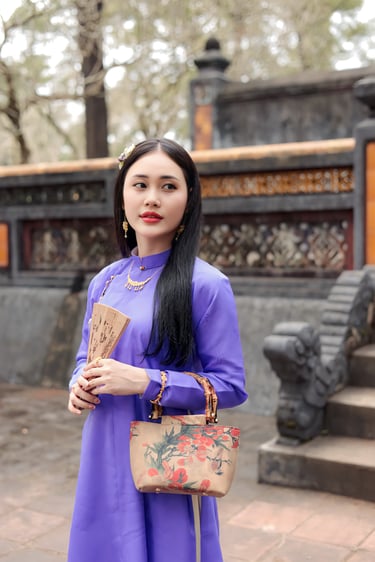 Lấy cảm hứng từ kỹ thuật may cung đình Huế, từ họa tiết mây, hoa văn cung đình, tông màu gấm vải truyền thống — nhưng được ứng dụng hiện đại, để áo dài không chỉ đẹp về hình mà còn sâu về ý.