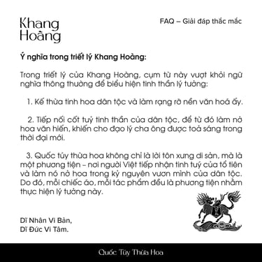 Khang Hoàng ra đời từ khát vọng giữ gìn và truyền cảm hứng về y phục truyền thống trong đời sống hiện đại. Chúng tôi mong muốn: